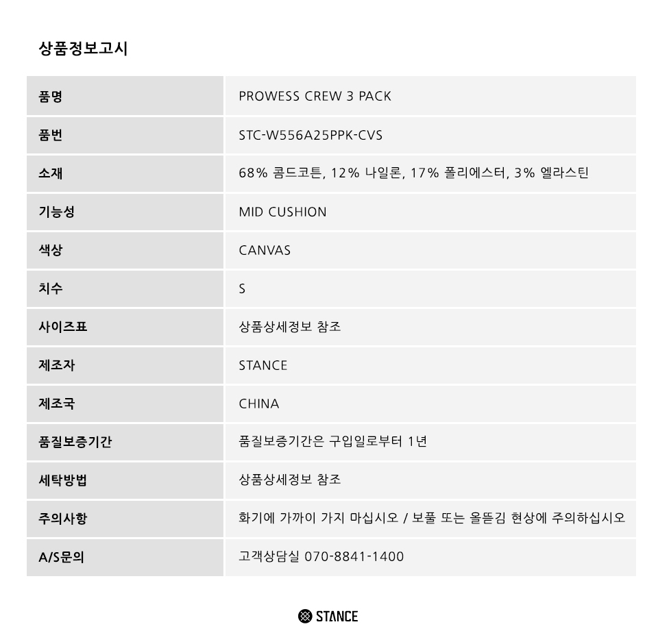 [STANCE KOREA] PROWESS CREW 3 PACK CANVAS quantity
