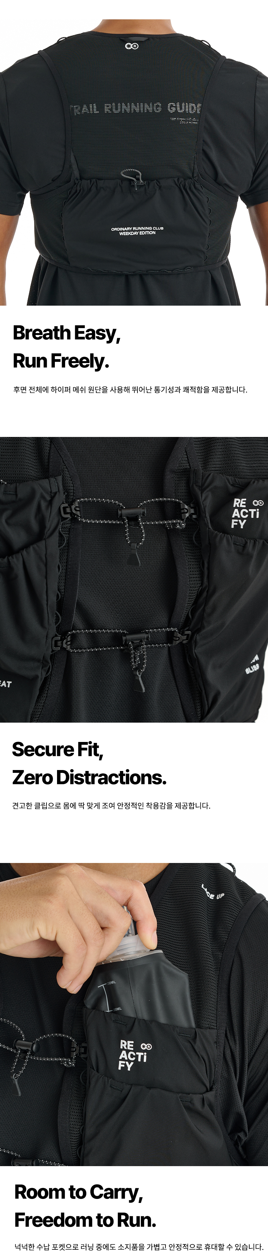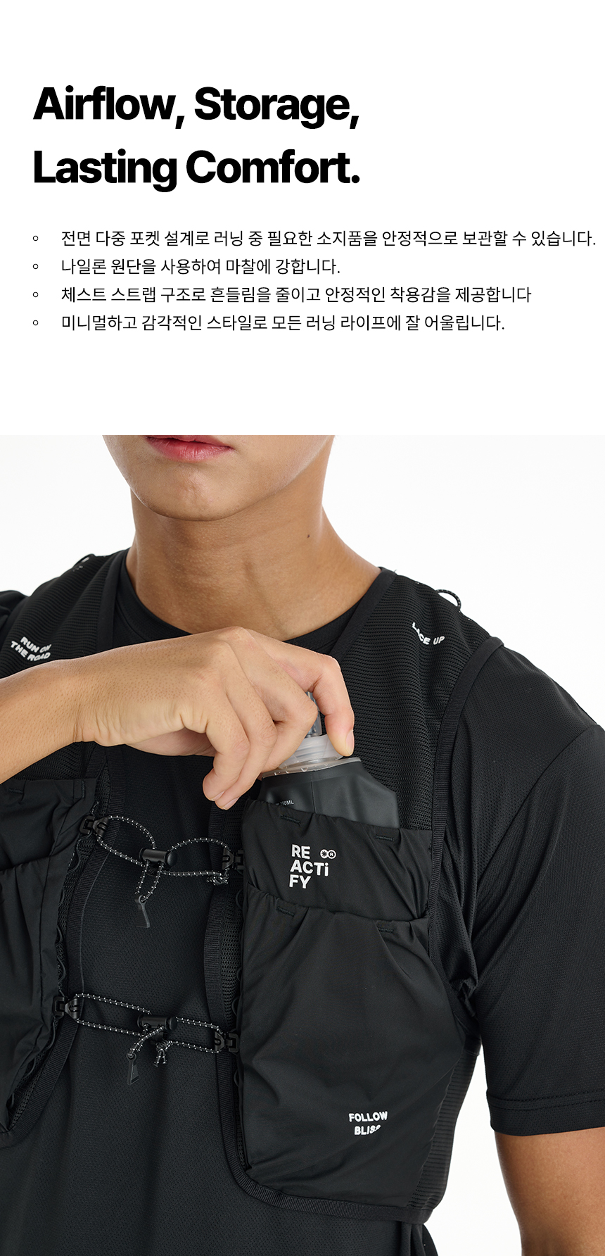 디자인과 기능, 그리고 편리한 수납까지 모두 담아 러닝의 순간을 감각적으로 빛내는 러닝 베스트입니다