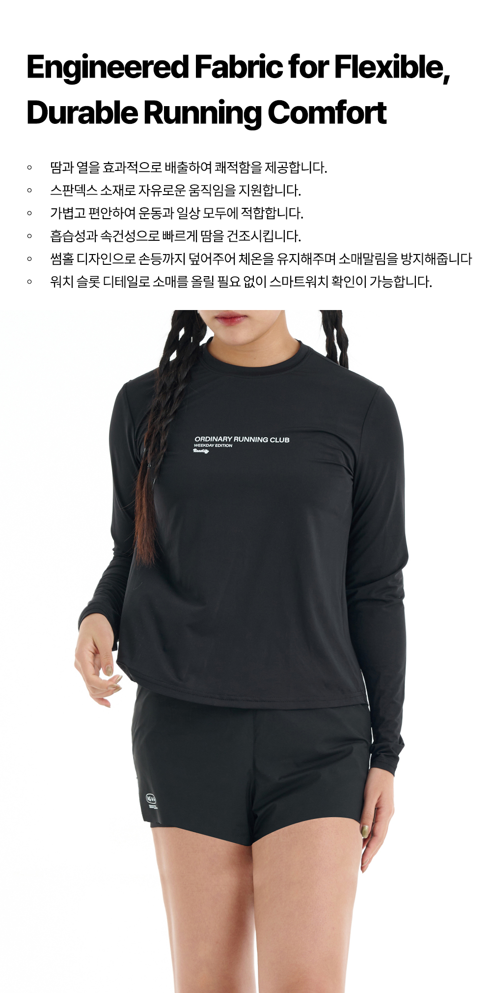 러너의 움직임을 따라가고, 따뜻함과 자유로움을 더해주며 완벽한 스타일을 완성하는 기능성 롱 슬리브 입니다.