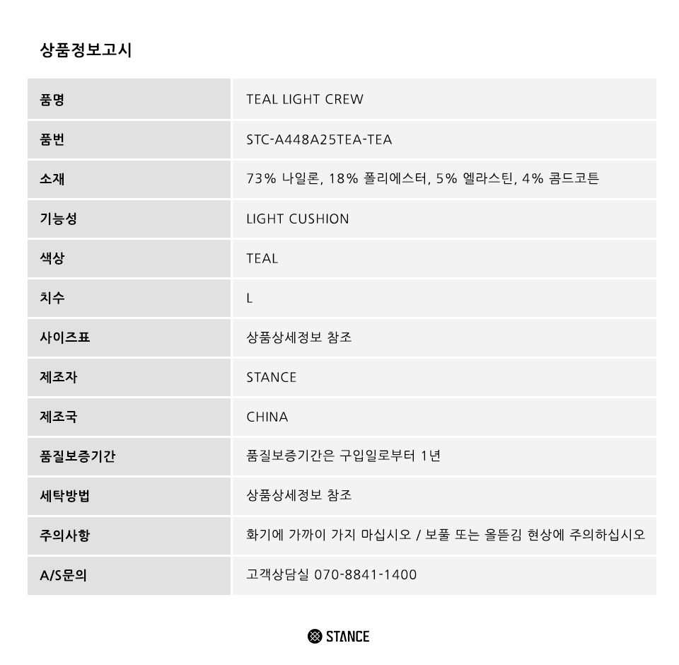 [STANCE KOREA] TEAL LIGHT CREW 수량